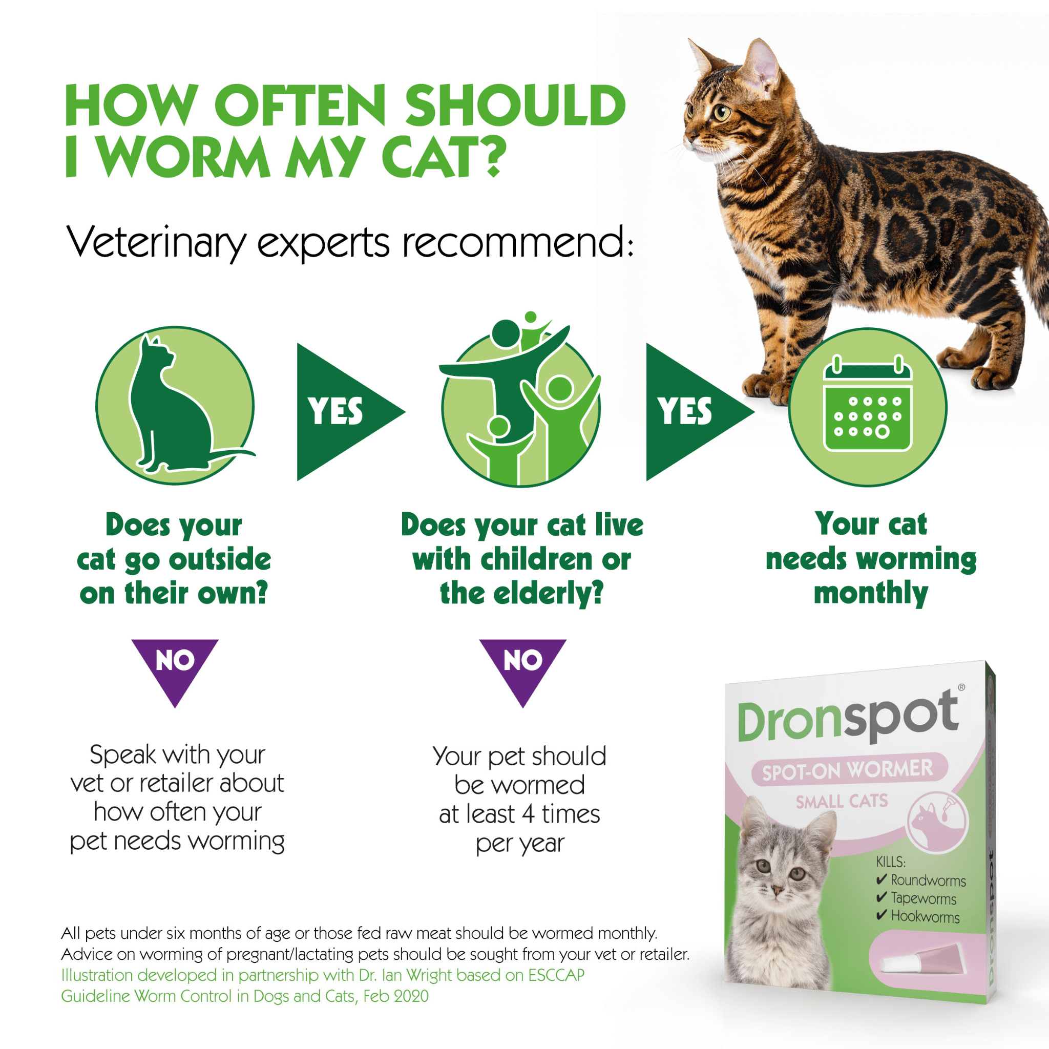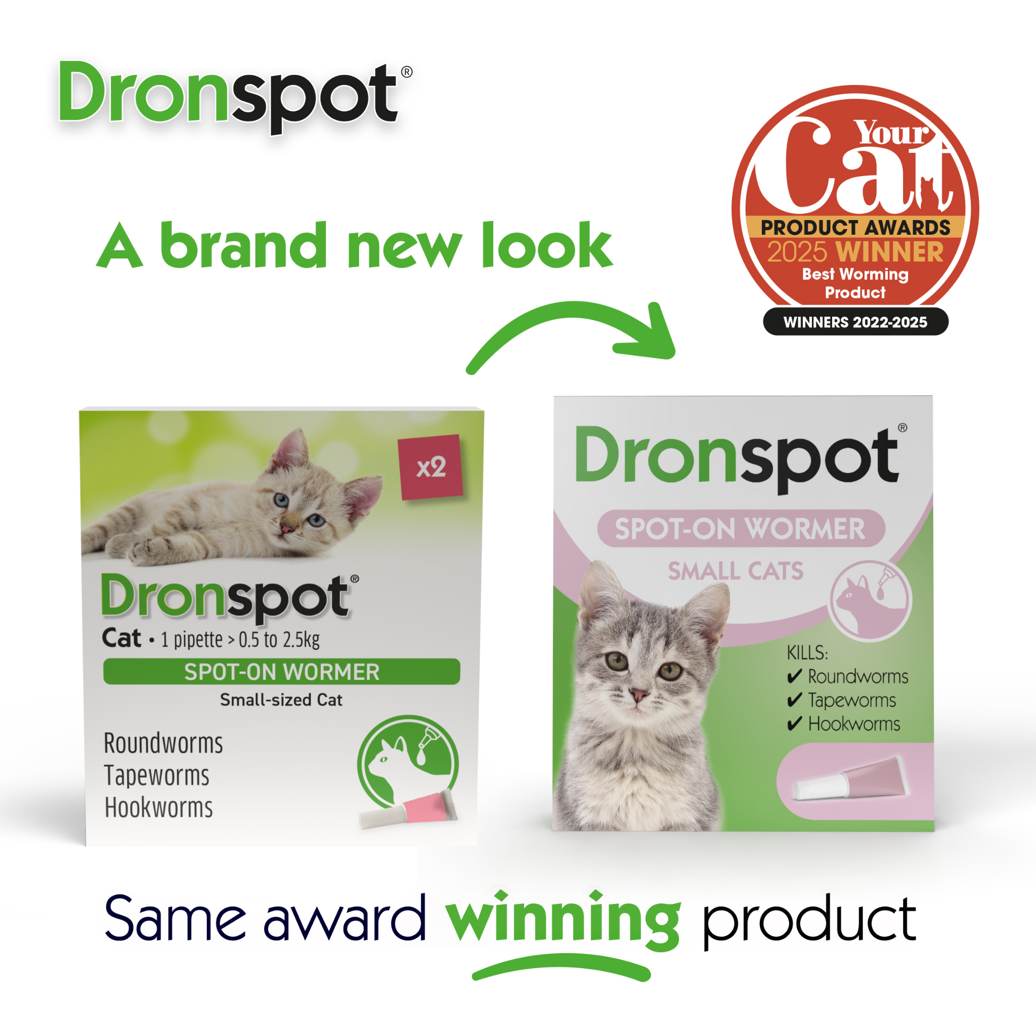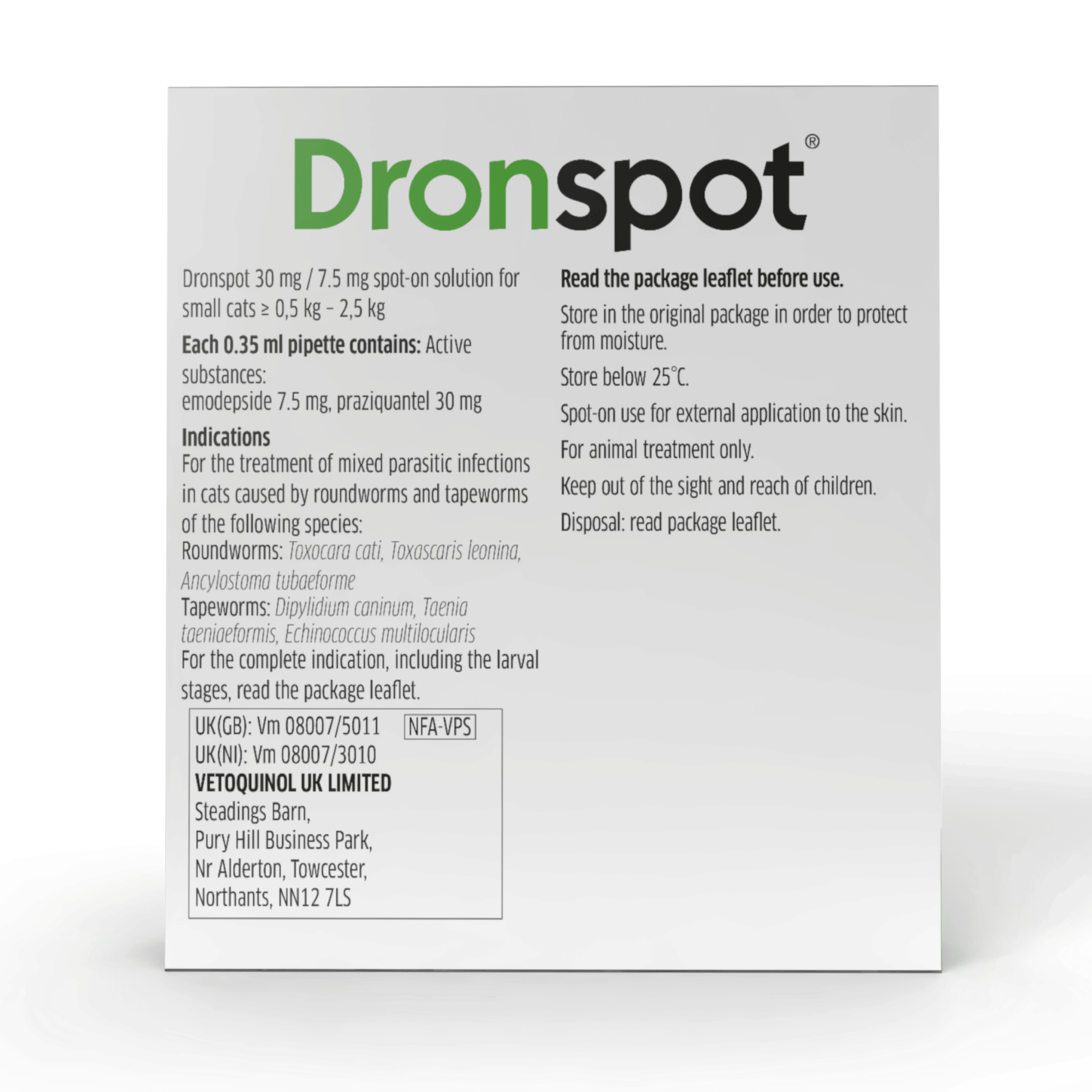 Dronspot is suitable for cats and kittens from 8 weeks of age and over 0.5kg bodyweight.